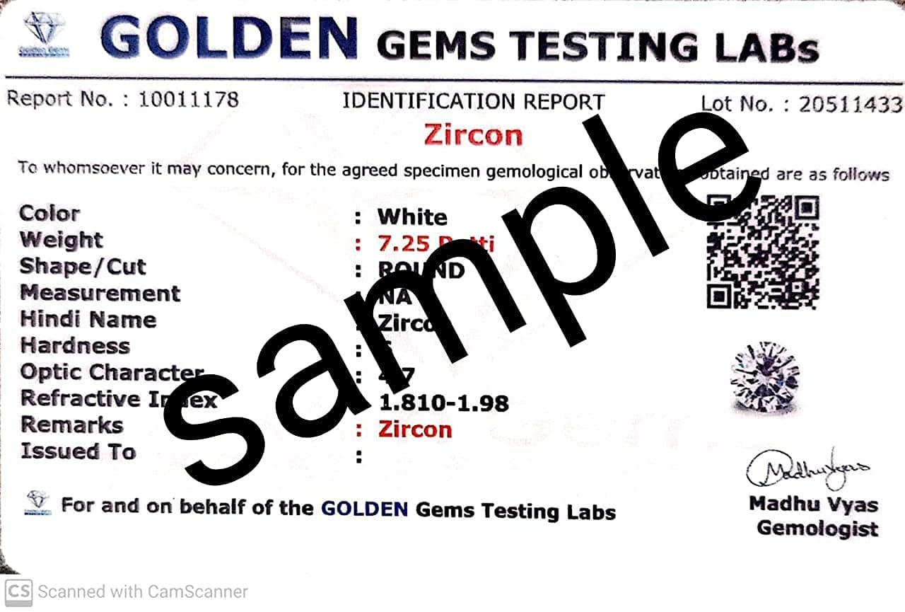 Zirconia can be made into a ring or a pendant with Silver only. And it should be worn on the Ring or the Middle finger of the Right Hand on a Friday during Shukla Paksha