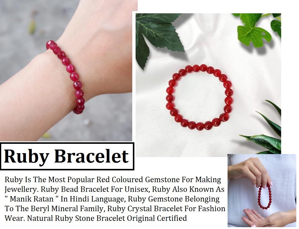 Ruby Is The Most Popular Red Coloured Gemstone For Making Jewellery. Ruby Bead Bracelet For Unisex, Ruby Also Known As ” Manik Ratan ” In Hindi Language, Ruby Gemstone Belonging To The Beryl Mineral Family, Ruby Crystal Bracelet For Fashion Wear. Natural Ruby Stone Bracelet Original Certified