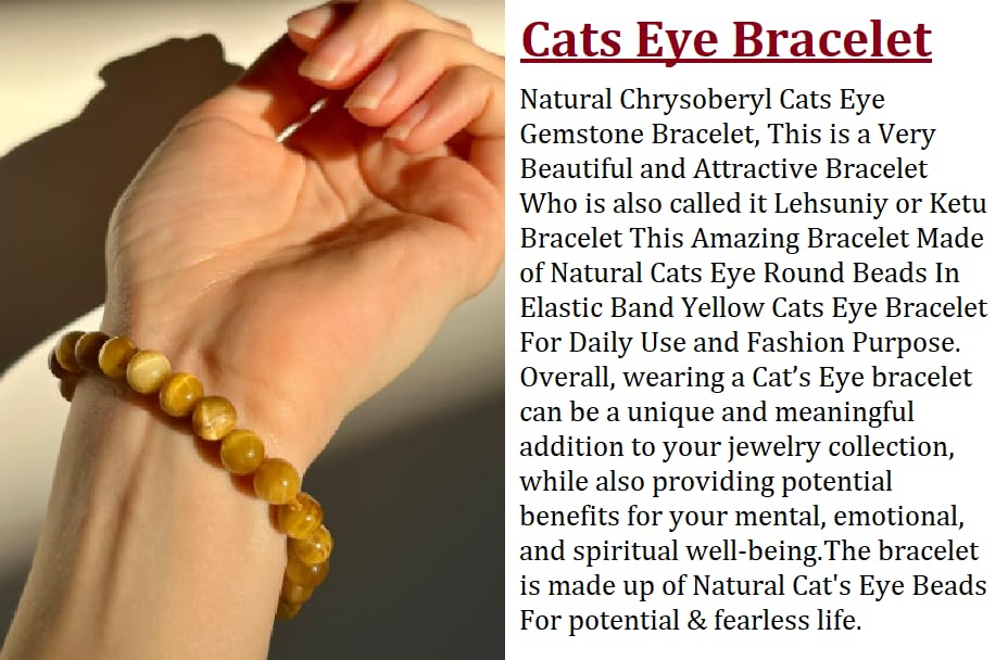 Natural Chrysoberyl Cats Eye Gemstone Bracelet, This is a Very Beautiful and Attractive Bracelet Who is also called it Lehsuniy or Ketu Bracelet This Amazing Bracelet Made of Natural Cats Eye Round Beads In Elastic Band Yellow Cats Eye Bracelet For Daily Use and Fashion Purpose.
