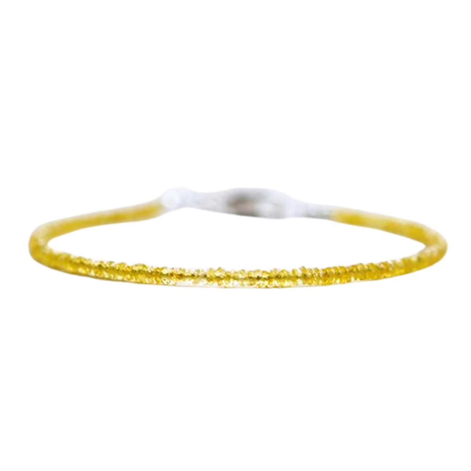 Enhance your style with this handcrafted Yellow Sapphire beaded bracelet. Featuring Faceted Rondelle beads in a vibrant Yellow tone, this bracelet is secured with a durable Silver plated lock and adorned with findings. Designed for Men & Women, the 7-inch adjustable size ensures a perfect fit for every wrist. Whether you’re dressing up or down, this elegant accessory adds a touch of charm to your ensemble.