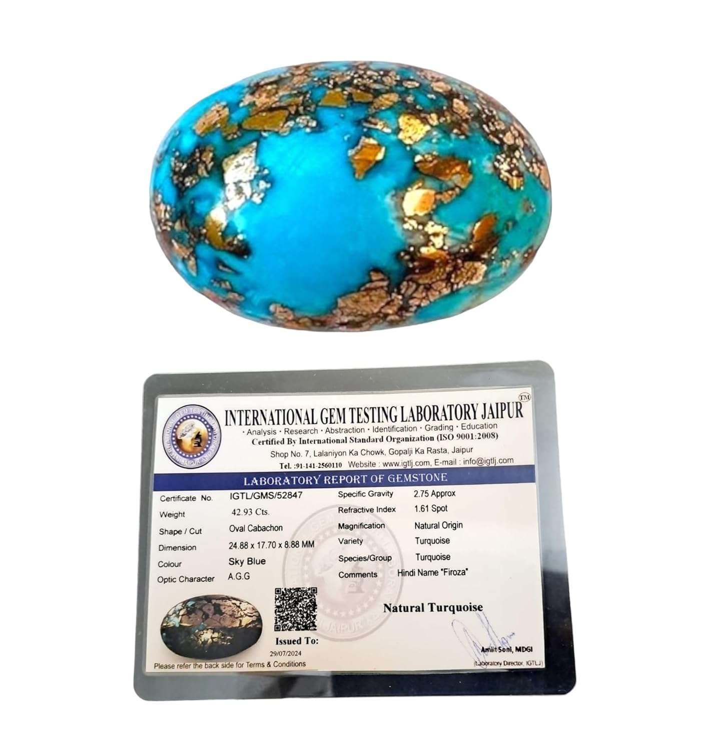 Ideal Gift for Birthdays, Anniversaries, Valentine Day or for any other auspicious occasion, when the divine energy and natural beauty of this Premium Turquoise Gemstone can boosts the spirit of your loved ones and uplifts their mood with joy and peace.