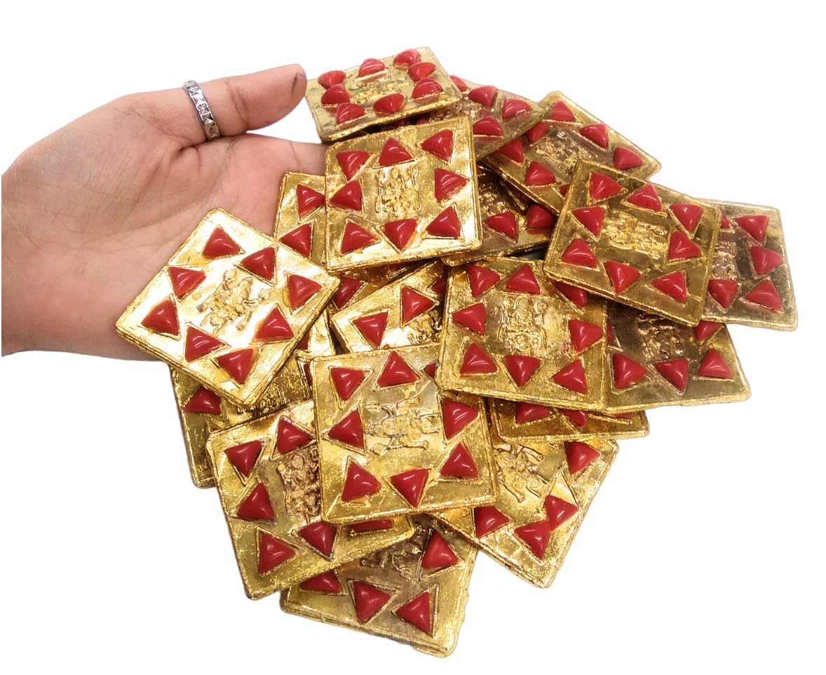 Gold Plated Shri Mangal Stone Yantra For Pooja.