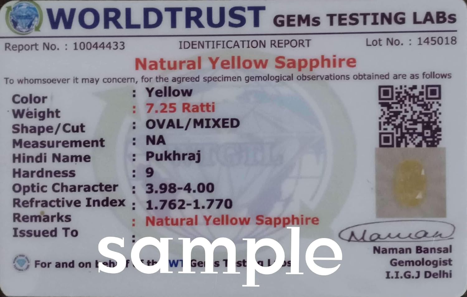 Certified Natural Oval Cut Yellow Sapphire (Pukhraj) Gemstone Product Type: Yellow Sapphire Weight: Clarity: Transparent Only Color: Yellow Content: 1 Origin: Bangkok Shape: Oval Size: Mm Treatment: Untreated Yellow Sapphire Stone Is Also Known As Pukhraj In Hindi, Pushpraj In Sanskrit, Pushprag In Tamil,Pushpragam In Telgu, And Pushpraja In Canada.This Is Highly Effective Gemstone For Astrological Purpose.Yellow Sapphire Is Remove All Obstacle Related To Career,Marraige And Marriage Life.Yellow Sapphire Speically Recommended For Neech Jupiter Or If Jupiter Is Staying In Malefic House In Anyone Chart. Properties Of Yellow Sapphire:- Hardness:- 7 To 8 Mohs Specific Gravity:-3.5 To 4 Color Of Stone:-Natural Yellow ,Whitish Yellow ,Lemon Yellow Sources Of Yellow Sapphire:-Ceylon, Bangkok, Thiland,Burma And Madgasker Yellow Sapphire Only One Stone Which Is Instantly Remove Obstacle In Marriage Of Male Or Female Individual.