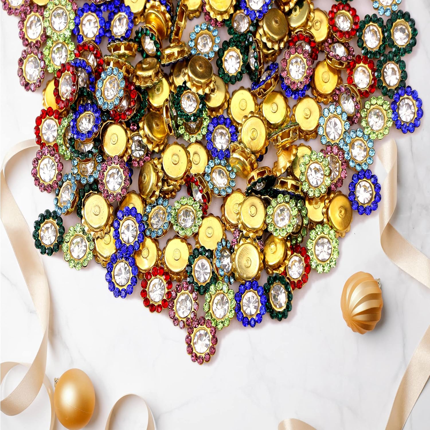 Zarkan Flower shape Buttons Stones are made of crystal glass and stainless steel, which is more gorgeous, sparkle, beautiful, sturdy. These sew on clear rhinestones, multi-faceted and crystal clear, reflect light perfectly.
