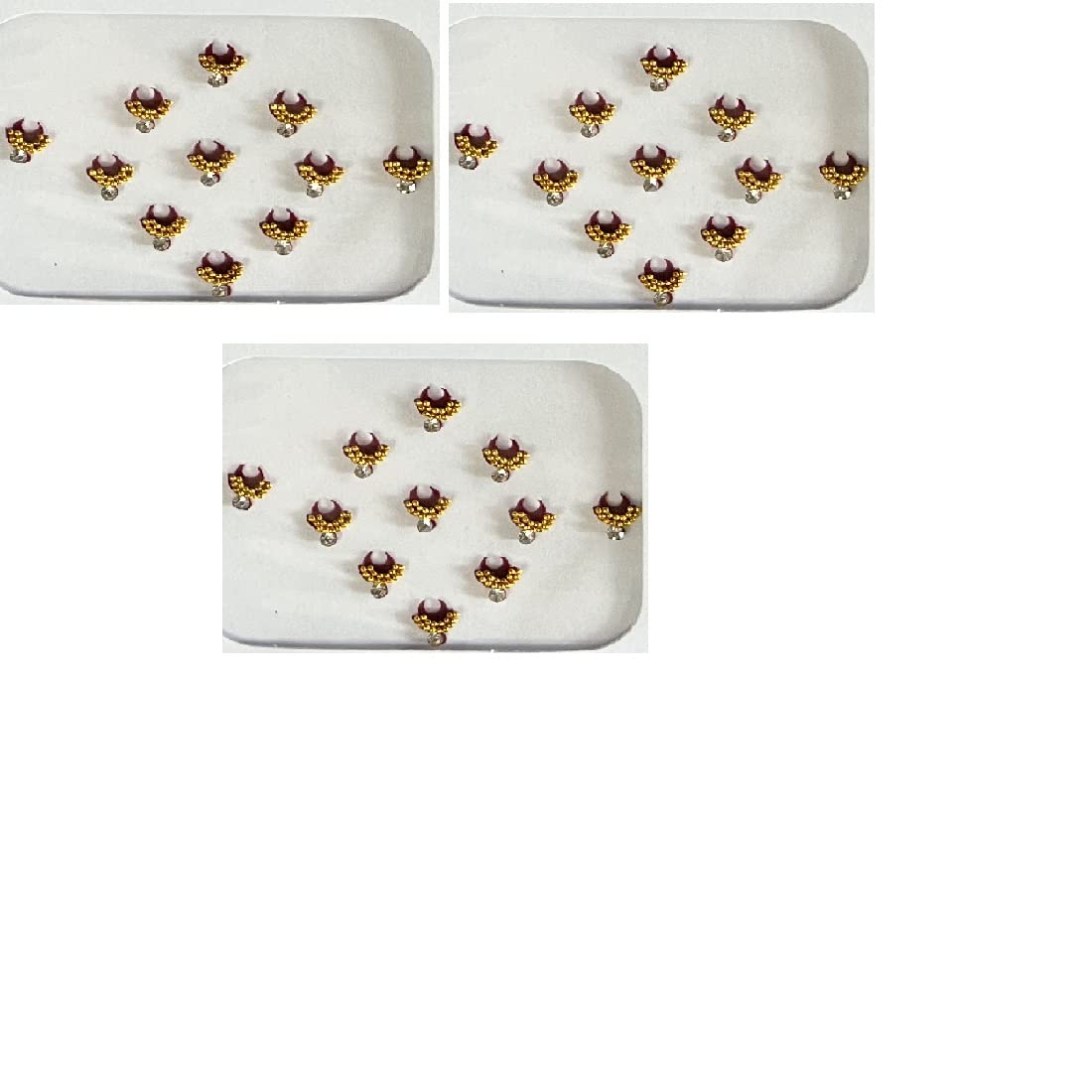 Type : Maroon Color Chandrakor shape Fancy 2 Line Moti Velvet Bindi Tikli size 5