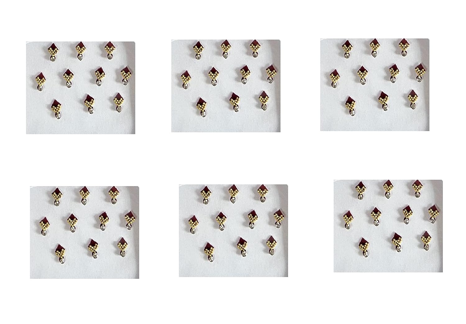 Type : Maroon Color Square shape Fancy 2 Line Moti Velvet Bindi Tikli size 4