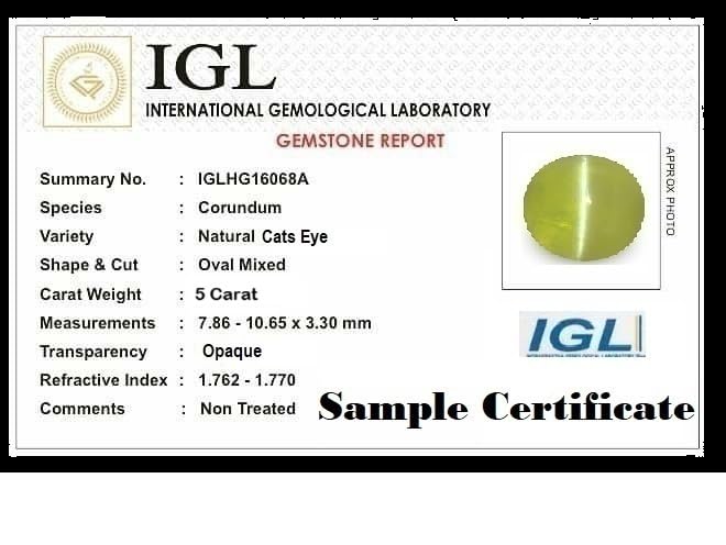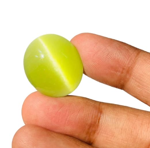 Cats Eye Stone Original Certified. Precious cat’s-eye, the rarest and most highly prized, is a greenish chatoyant variety of chrysoberyl called cymophane; the chatoyant effect is due to minute parallel cavities. Quartz cat’s-eye, the commonest, owes its chatoyancy and grayish green or greenish colour to parallel fibres of asbestos in the quartz.Green Cats Eye Stone ; Gemstone Color, Green ; Gemstone Material, Cat Eye ; Origin, Sri Lanka, India This certified gemstone has a beautiful dark green colour and is made of crystal having a weight Natural Chrysoberyl Catseye Gemstone, Green Lhesuniya Catseye Gemstone, Green Cateye Gemstone and Natural Lehsunia.