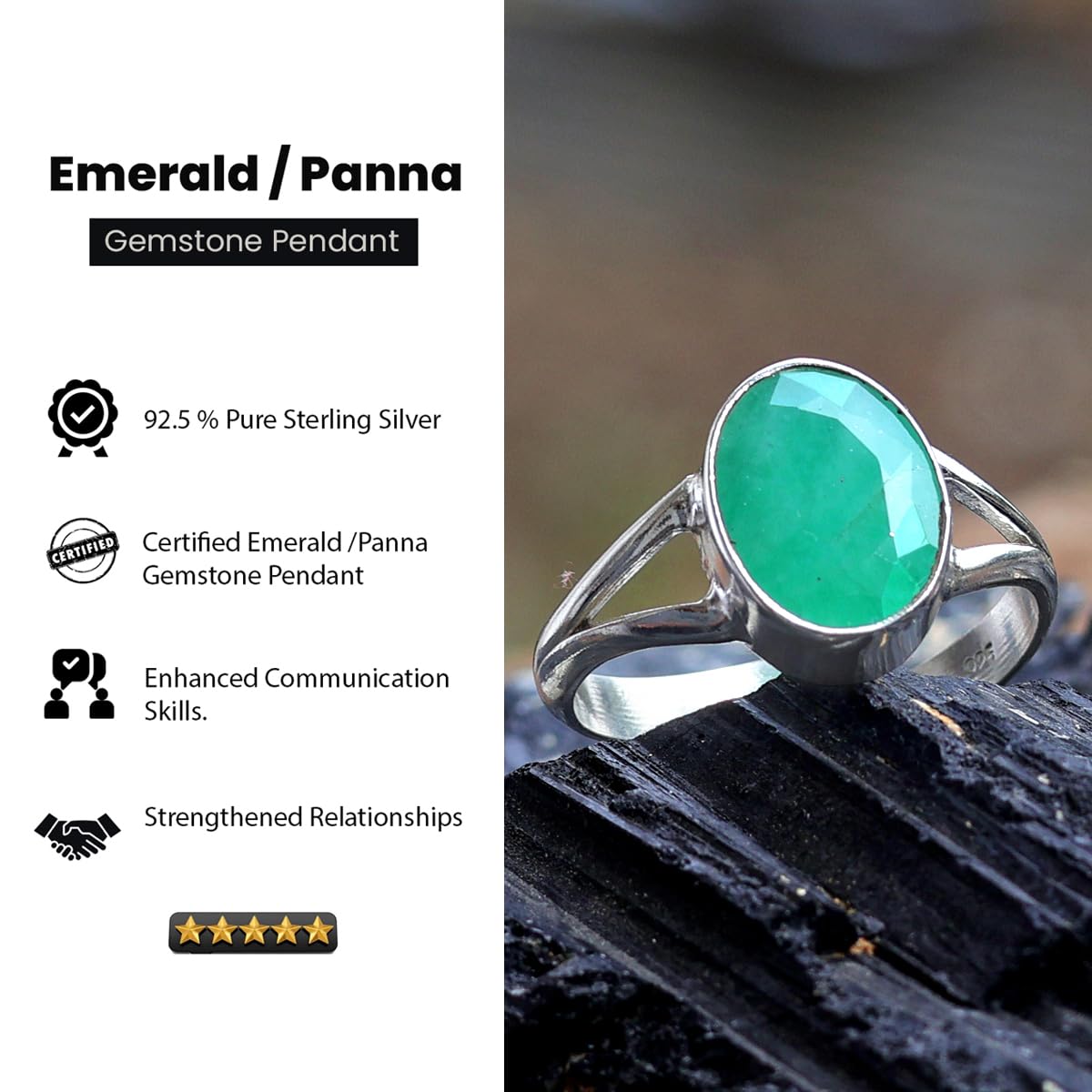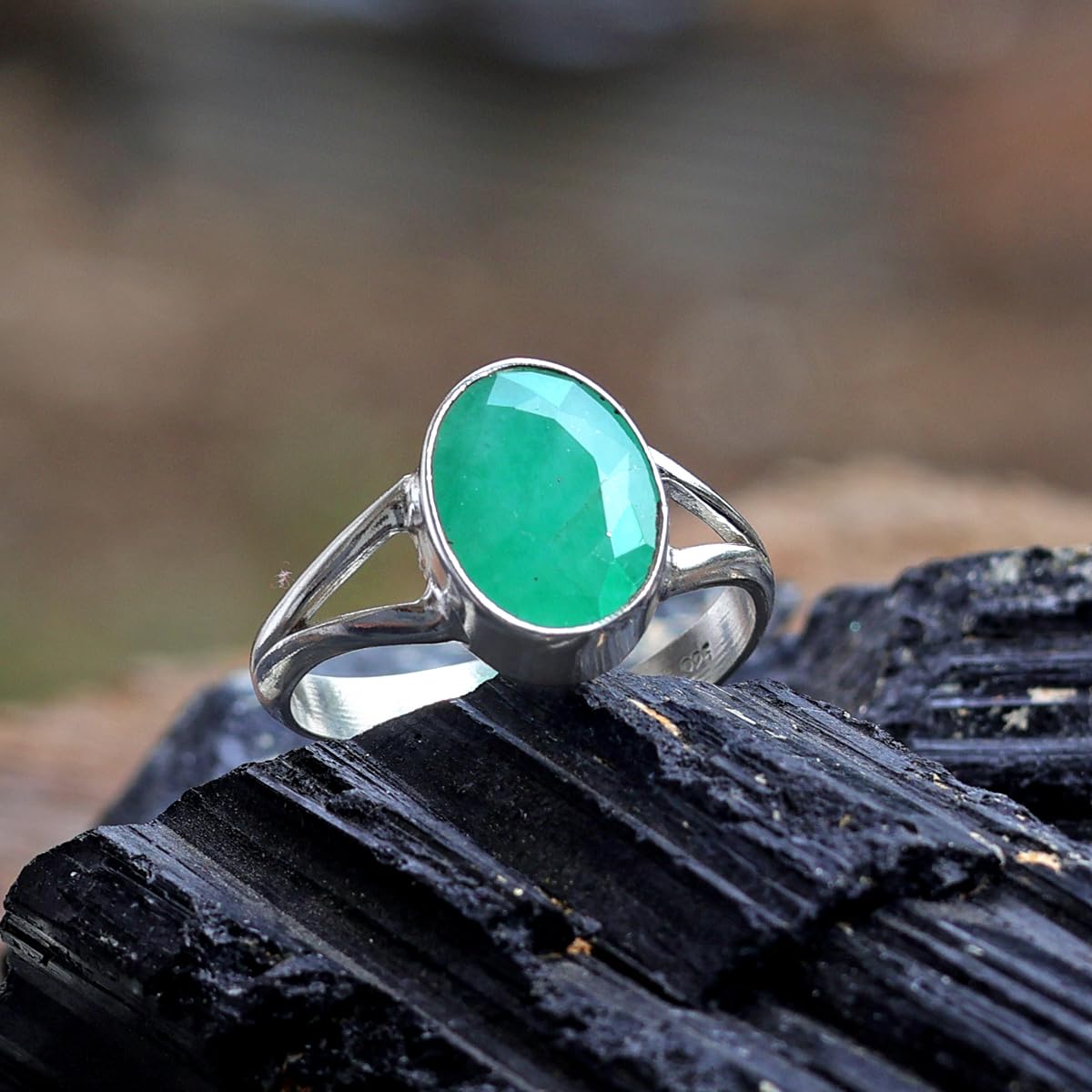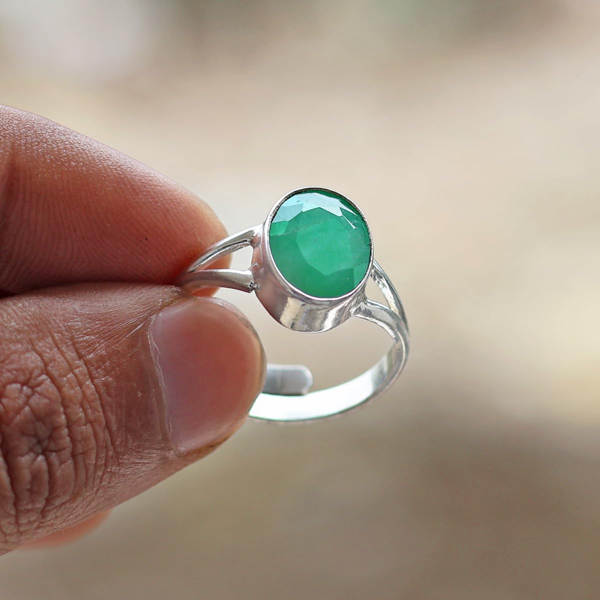 Item part number : Emerald-Gemstone-Silver-Ring