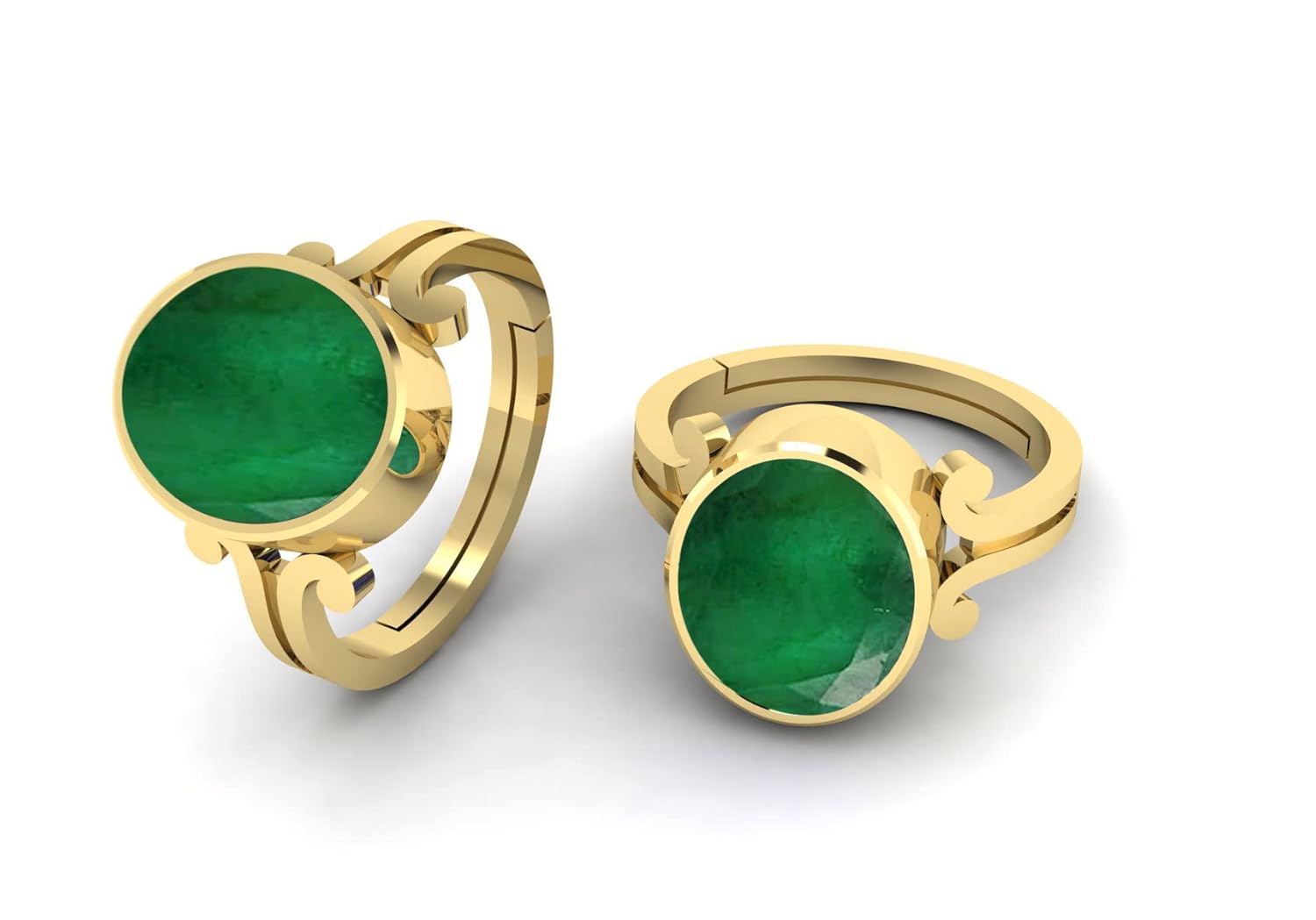 Natural Emerald or Panna is a Gemstone that is ruled by the Planet Jupiter. The Color is about Green is an expensive but safest stone considered. Mostly, it is worn for prosperity and leisure and is said to be good gemstone for those who are in business or industries. Wearing Day: Should be worn on Thursday Evening before Sunset. Cautions: One should remove and get a new one if the Gemstone get cracked or consult your astrologer. This ring is suitable for Men having ring sizes between 10 to 22 as per Indian ring size standards. For same product in small ring size (For women) between 4 to 10 search Size of this ring is easily ajdustable by hand. Gemstone is left open from the back side for rays to pass through and reach finger properly. High quality making in our own state-of-the-art manufacturing unit gives this ring a beautiful look. Gemstone certified by a well reputed laboratory. Pure Panchdhatu Ring with 22 Karat gold plating . This panchdhatu ring is made up with 5 Dhatus or metals namely Gold, Silver,Copper,Zinc and Iron.