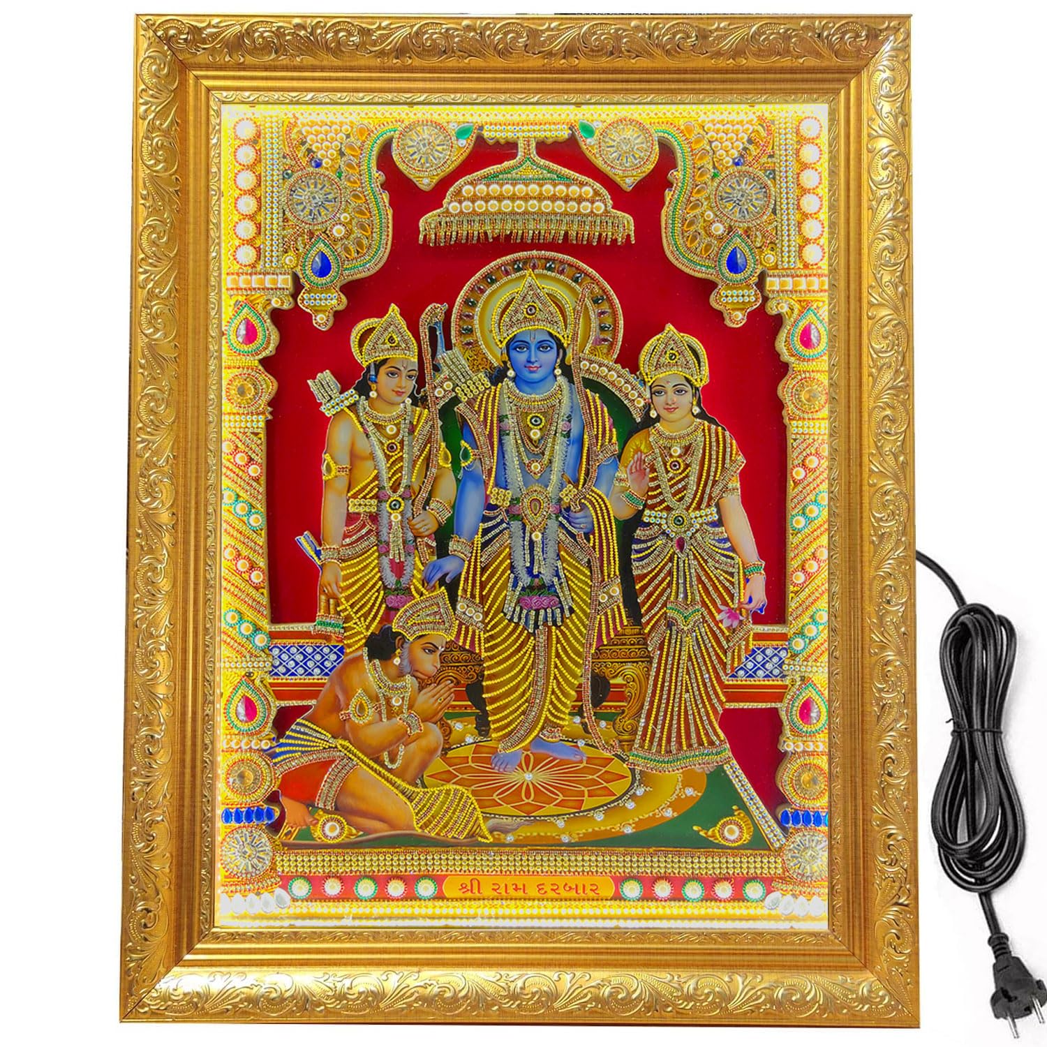 Bring the goodness & blessings in your home with this Beautiful Blessing Idol. Add some spiruality in your life. This LED ram darbar frame is made very carefully with fine lighting around the deity.